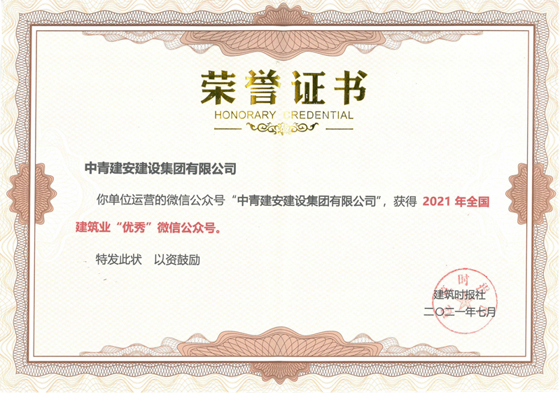 近日,由建筑时报社主办的2021年建筑业微信公众号运维经验交流研讨会暨全国建筑业优秀公众号颁奖典礼在江苏省扬州市召开。集团公司运营的官方微信公众号“中青建安建设集团有限公司”获评“2021年全国建筑业优秀微信公众号”。...