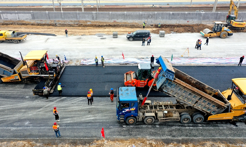 唐河路-安顺路打通工程首段沥青顺利摊铺
