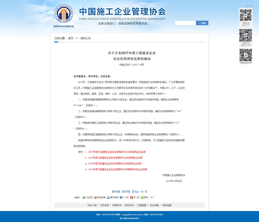 日前,中国施工企业管理协会公示了2017年度工程建设企业社会信用评价年审合格企业,中青建安集团凭借规范运作和诚信经营,顺利通过年审,再次荣获AAA级信用等级。 工程建设企业社会信用评价是中国施工企业管理协会遵循公平...