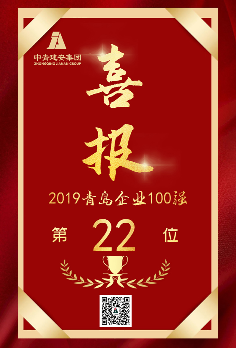 喜报!中青建安集团蝉联“青岛市百强企业”荣誉,总排名升至22位