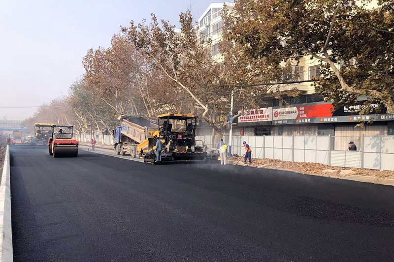 【建安新闻】胶州市胶州路工程忙“上妆”,北半幅沥青面层铺设完毕