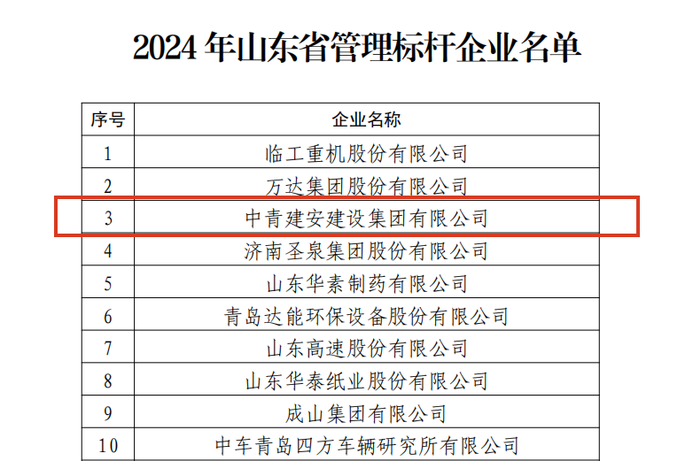 为深入贯彻落实党的二十届三中全会精神,完善中国特色现代企业制度,提高企业经营管理水平,助力打造世界一流企业,山东省工业和信息化厅组织开展山东省管理标杆企业和企业管理优秀成果评选工作。经过层层筛选和专家评审,中青建安集团...