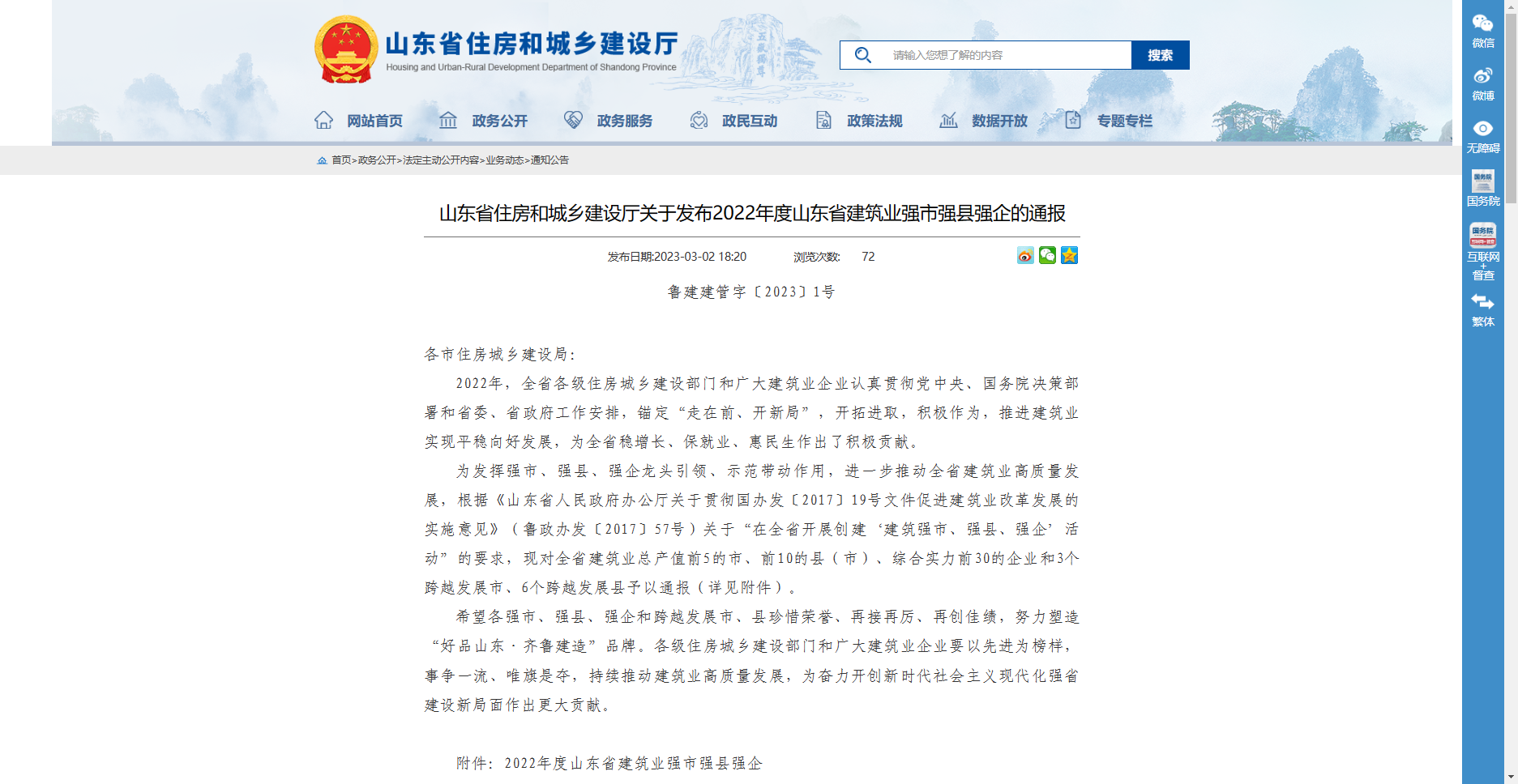 近日,山东省住房和城乡建设厅发布《山东省住房和城乡建设厅关于发布2022年度山东省建筑业强市强县强企的通报》,备受瞩目的省建筑业30强企榜单正式揭晓。中青建安集团成功入围综合实力30强企,位列第8位。这是集团连续6年位...