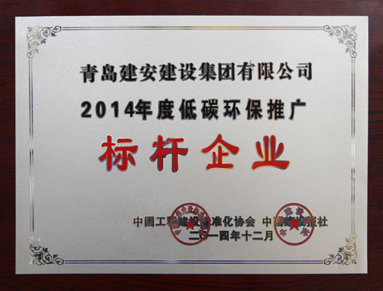 青岛建安集团成为青岛市唯一一家荣获“2014年度低碳环保推广标杆企业”的施工企业