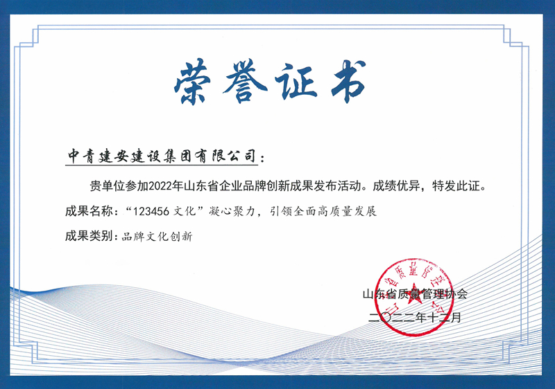 日前,山东省质量管理协会发布2022年山东省企业品牌创新成果,中青建安集团申报的《“123456文化”凝心聚力,引领全面高质量发展》入选品牌文化创新类成果。 2022年5月,为推动企业品牌培育工作,加快制造业质量品牌...